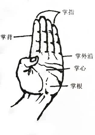 要求:掌心开展,竖指。